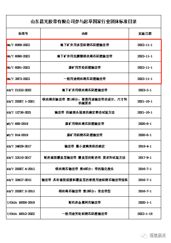 截止目前,山東晨光膠帶有限公司獲得發明、實用新型專利共計80余項;計算機軟件著作權14項;參與起草國家、行業標準20余項,正在實施國家、行業團體標準16項;