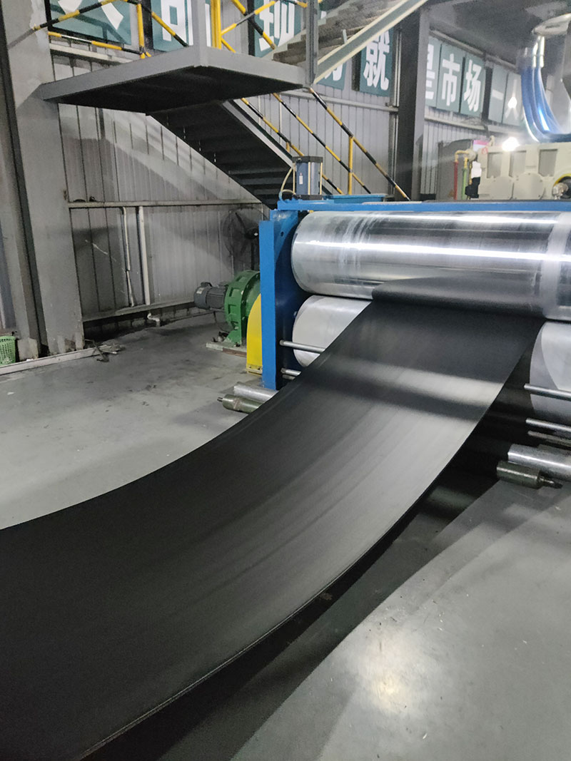本輸送帶由三部分組成:整體帶芯、聚氯乙烯浸漬糊、覆蓋層。整體帶芯是輸送帶的骨架材料,聚氯乙烯增塑糊用來填充浸漬帶芯,聚氯乙烯增塑糊由各種不同性能的化工原料組合形成,以確保輸送帶所需要的安全性能,比如阻燃性能和抗靜電性能等。覆蓋層決定了輸送帶的運輸特性、抗沖擊特性、耐磨特性、耐腐蝕特性,它通過高溫塑化或平板硫化形成。